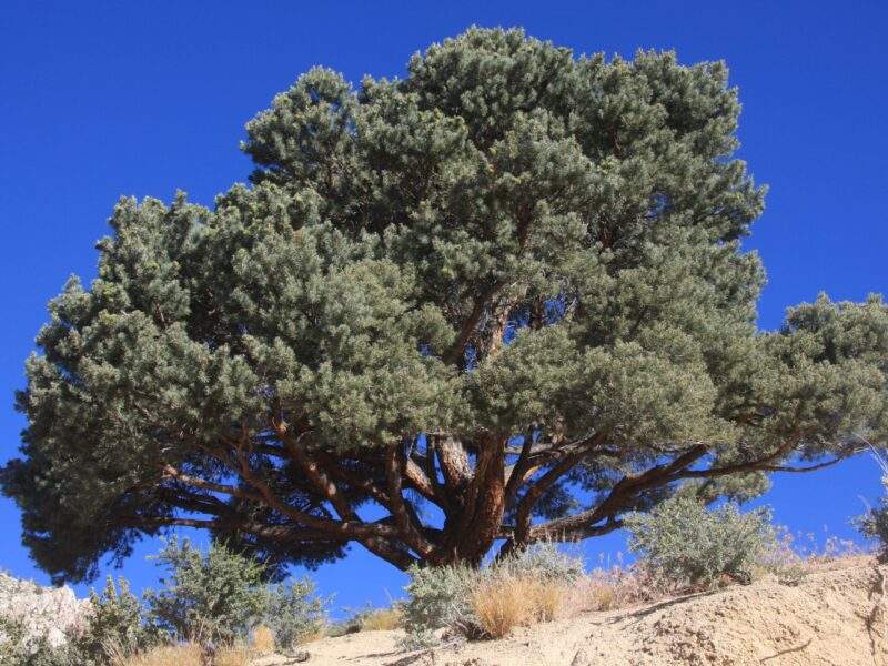 Pinyon pine is native to the American southwest. It also grows edible nuts, an important food source for Native Americans for centuries. The tree itself is small to medium-sized, only growing up to 30 feet tall. It has a slow growth rate and needles that are blue-green in color.